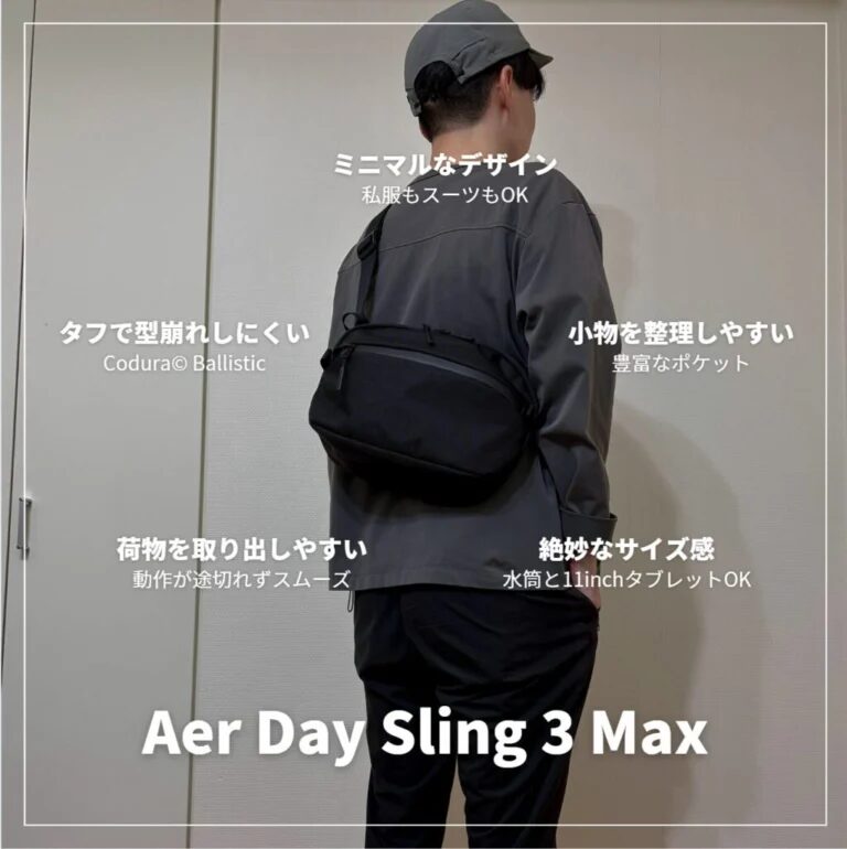結論として、外出の快適さはバッグで決まります。2025年はAer Day Sling 3 Maxが外出の最適解でした。