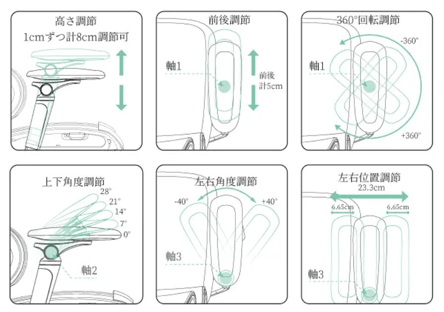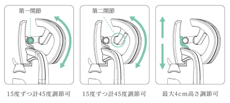 ヘッドレスト3D(高さ+2軸角度)2D(高さ・角度)