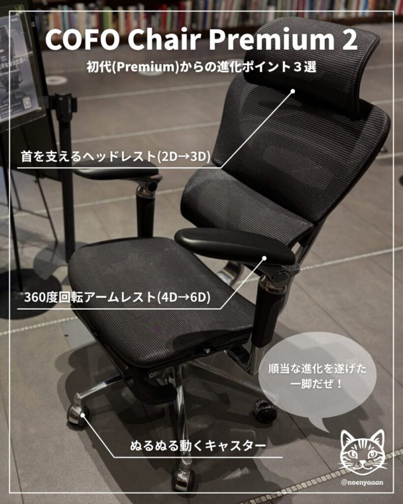 私はCOFO Chair Premiumを愛用していますが、先日、二子玉川の蔦屋書店で新モデル「COFO Chair Premium 2」を試座してきました。