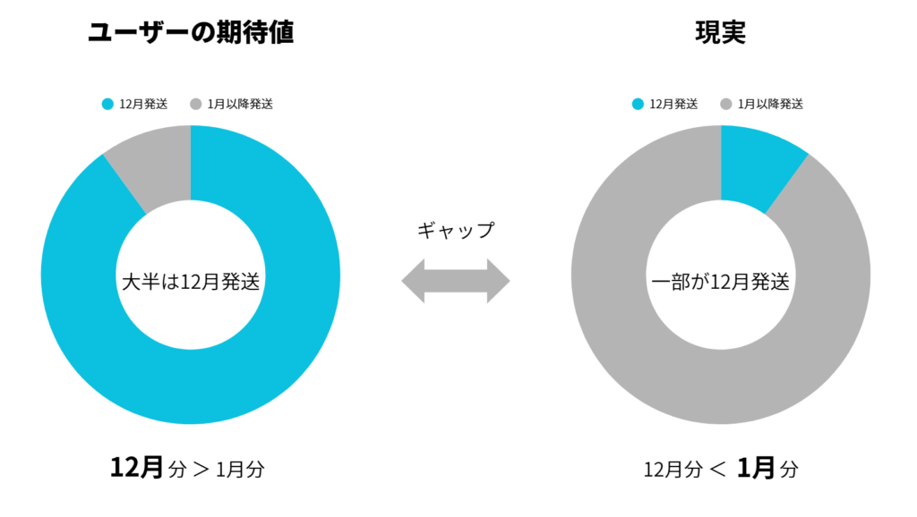 結論から言うと、アナウンスの文面からは「大半は12月発送」と私は読み取れました。そのため、ユーザーとして年内到着を前提にしていたのは、ある意味自然な流れだったと感じています。